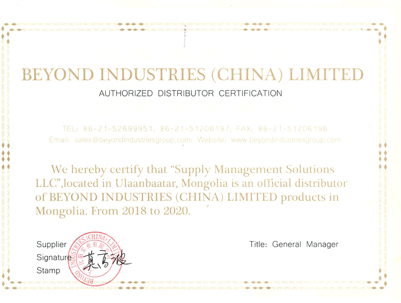 Authorized distributor of Beyond Industries ( CHINA ) Limited products in Mongolia